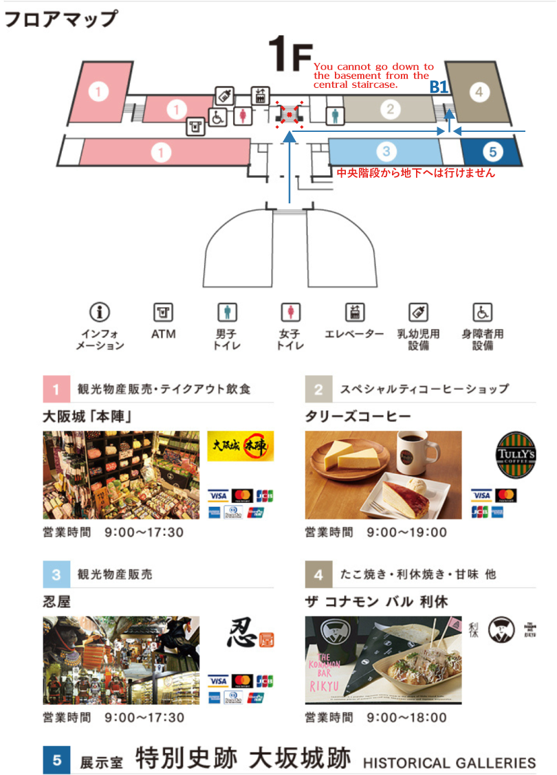 ・JR大阪環状線:「森ノ宮」駅,「大阪城公園」駅丁目駅(1-B),「天満橋」駅(3)